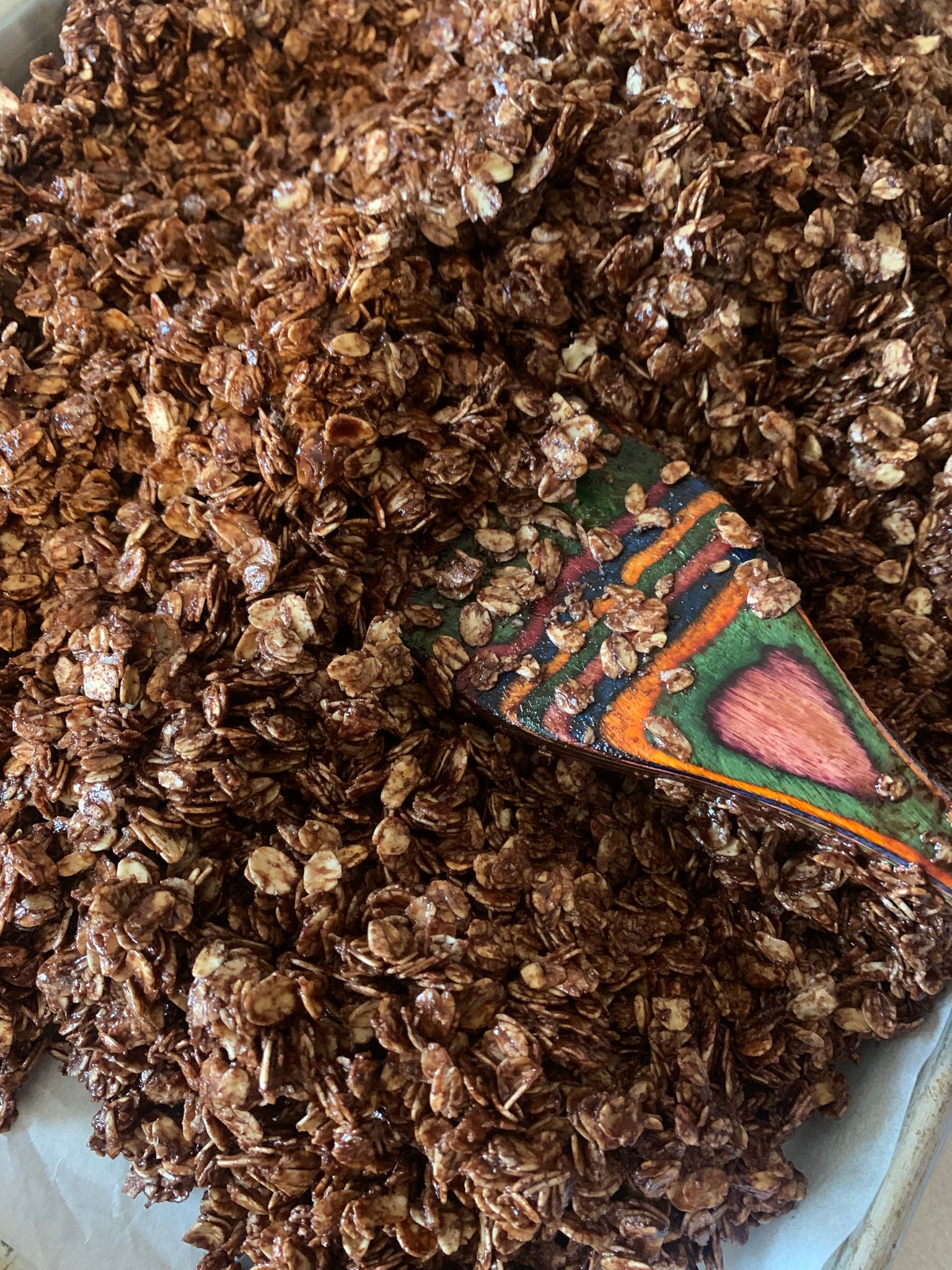 Cocoa-infused crunchy granola made with raspberry pieces and coconut shreds. Made in small batches weekly during market season, and made to order when requested.